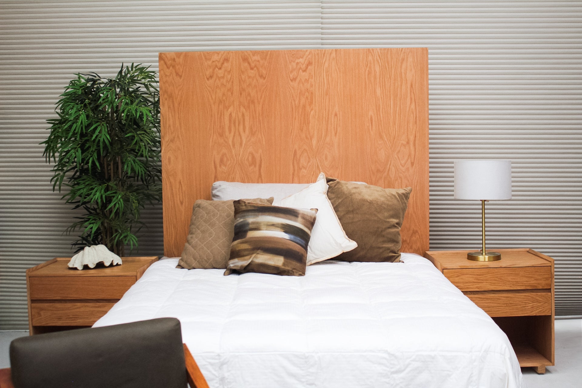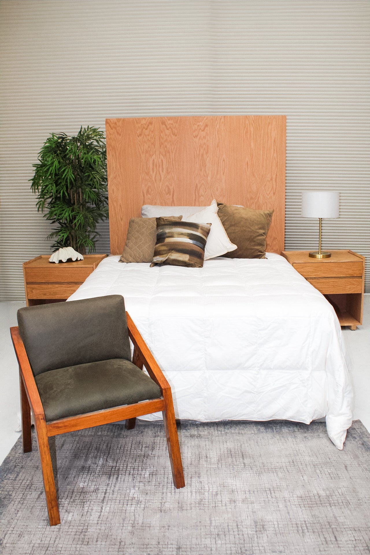 Recamara matrimonial. Incluye dos euros de 80*60*60 cm y una cabecera matrimonial, fabricados en MDF con chapa de encino y acabo mate.