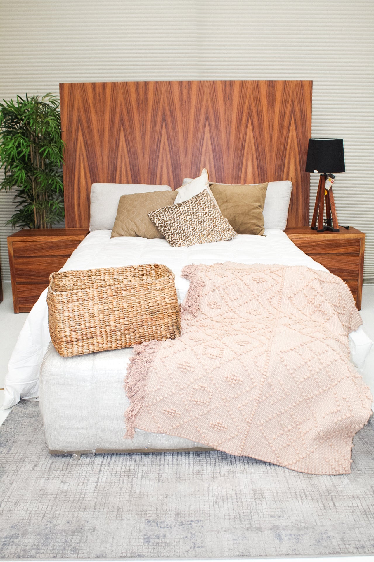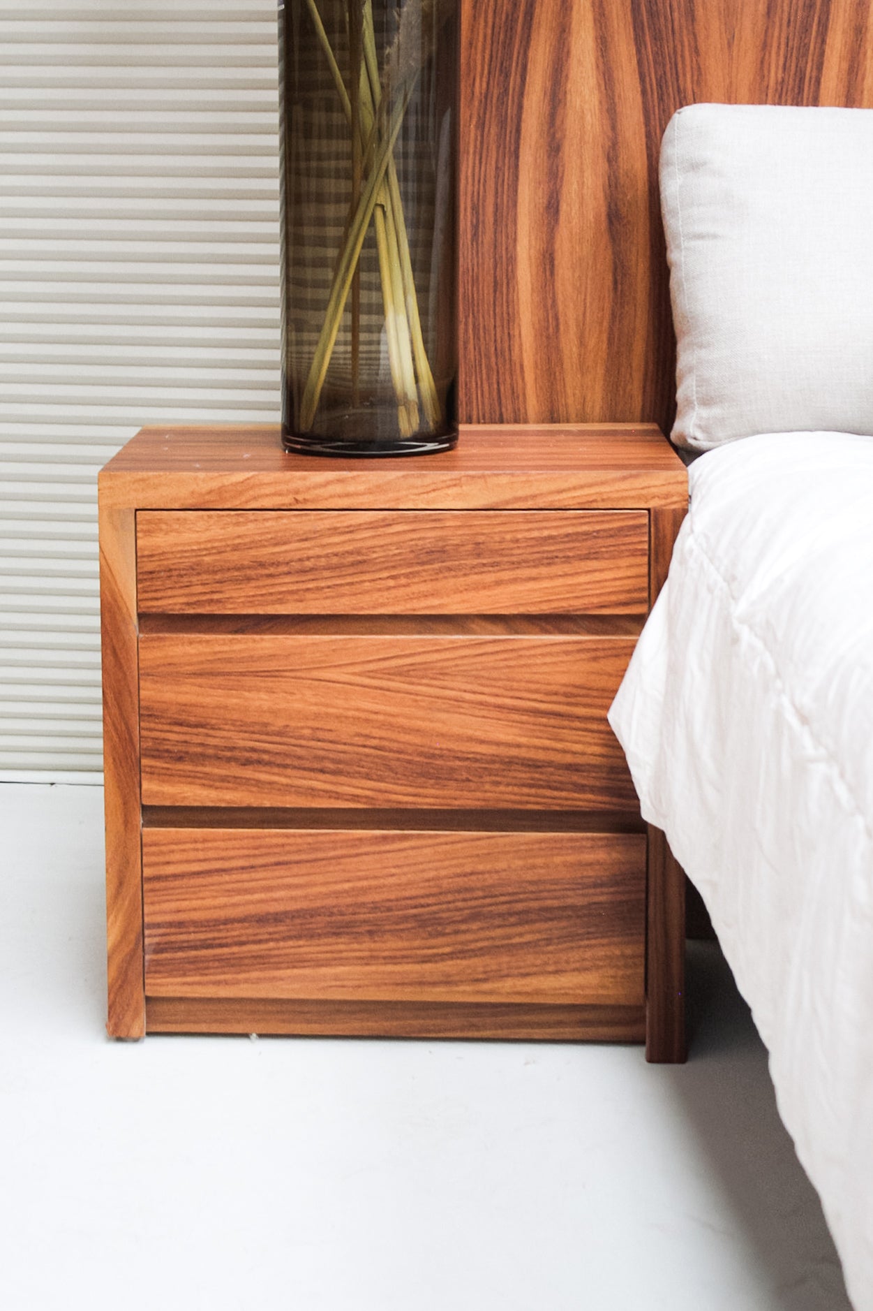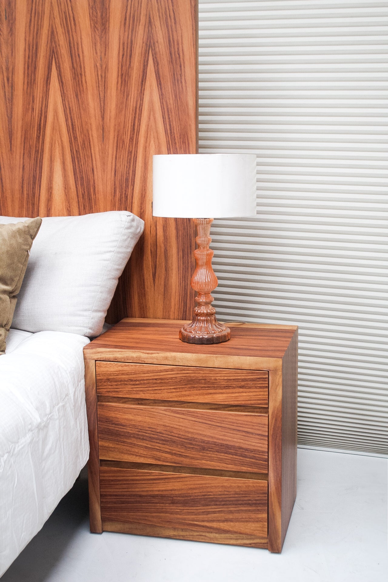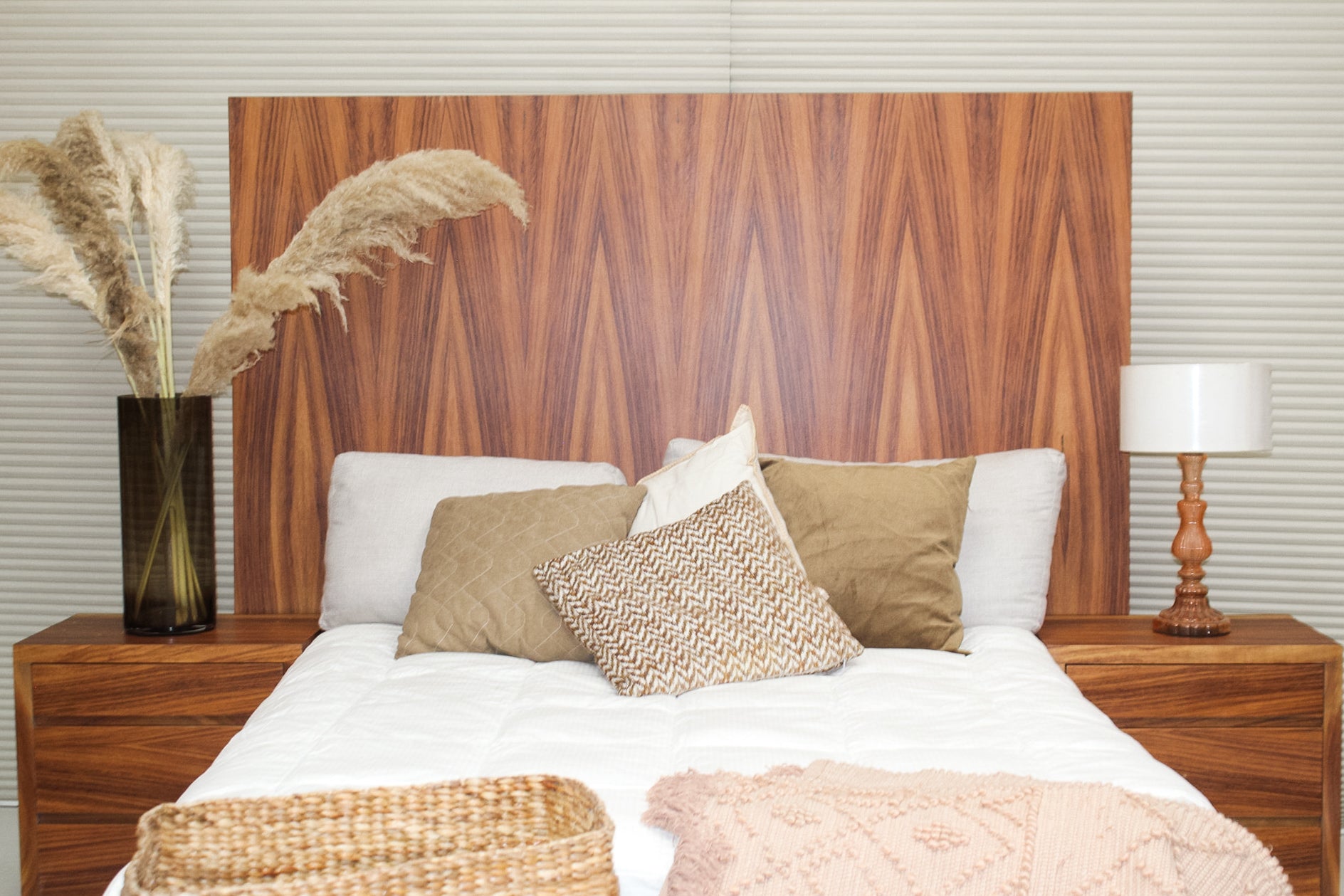 Crea espacios únicos y confortables con nuestra recamara Savia. Fabricada en MDF con chapa natural de parota y un diseño único y envanado a mano.